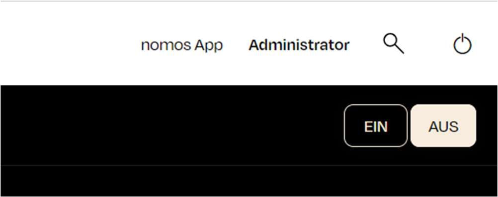 En haut à droite du tableau de bord du contrôleur nomos se trouve la barre de navigation, qui offre un accès rapide à des fonctions importantes.