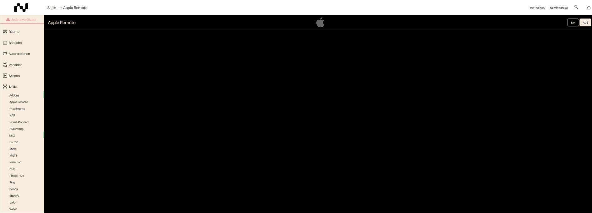 Dans cette vue, vous pouvez gérer l'intégration de la télécommande Apple avec votre système. La compétence de la télécommande Apple vous permet de contrôler des appareils Apple, comme les Apple TV, via votre système SmartHome.