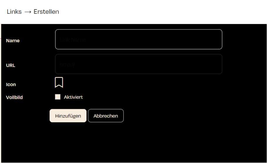 Pour créer un nouveau lien, cliquez sur le bouton Créer dans le coin supérieur droit. Cela ouvrira le formulaire pour ajouter un nouveau lien.