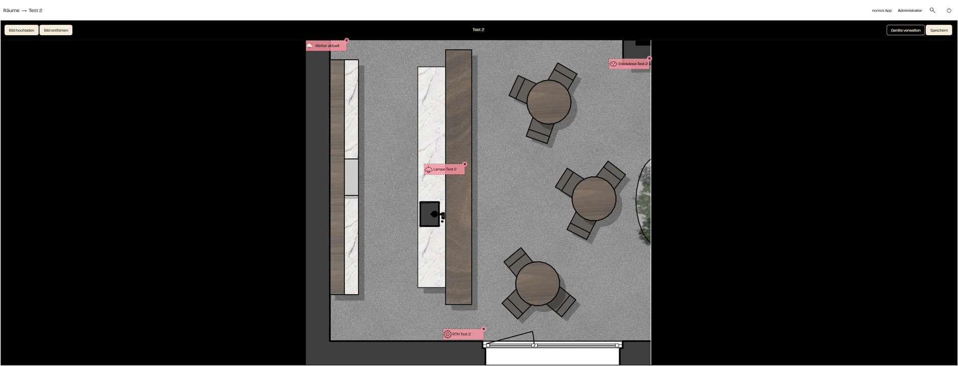 La fonction de visualisation dans le contrôleur nomos permet, après avoir téléchargé une image, de visualiser les appareils dans une pièce en les déplaçant vers les positions correctes sur l'image. Cela permet une meilleure vue d'ensemble et une gestion facile des appareils.
