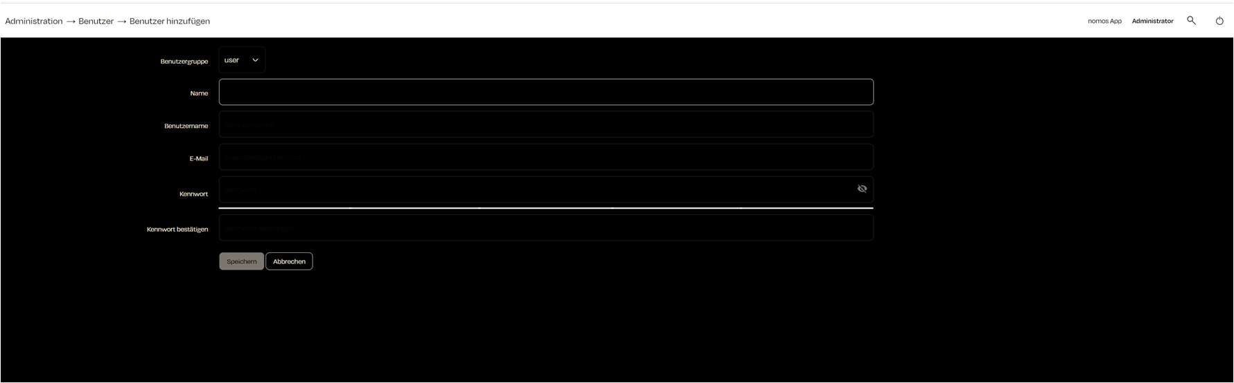 Das Hinzufügen eines neuen Benutzers in der nomos App ist ein einfacher Prozess, der es Administratoren ermöglicht, neue Benutzerkonten zu erstellen und ihnen Berechtigungen zuzuweisen.