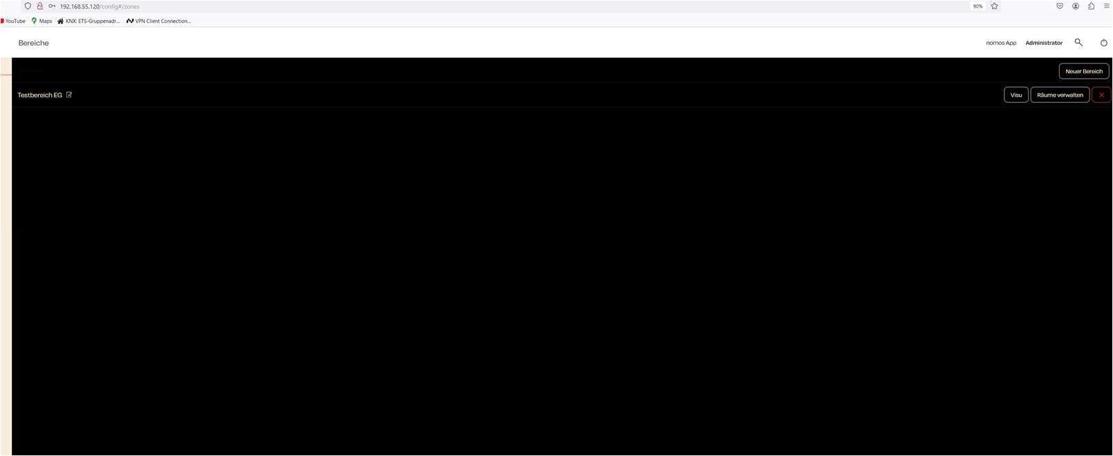 Um die Organisation größerer Installationen zu erleichtern, können Sie im nomos Controller neue Bereiche hinzufügen. Bereiche ermöglichen es, Räume in logische Gruppen zu unterteilen, wie z.B. Stockwerke oder Gebäudeflügel.