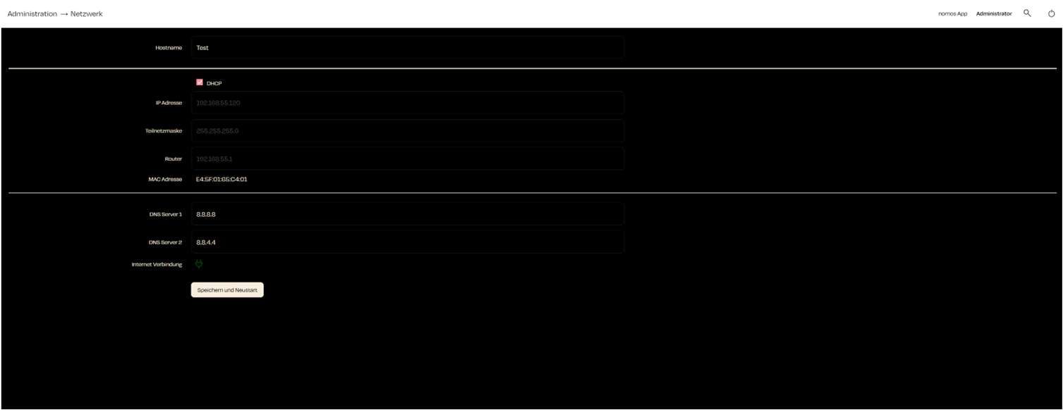 In this section, you can configure the network settings of your nomos Controller. These settings are crucial to ensure that your controller communicates correctly with your network, devices, and the internet.