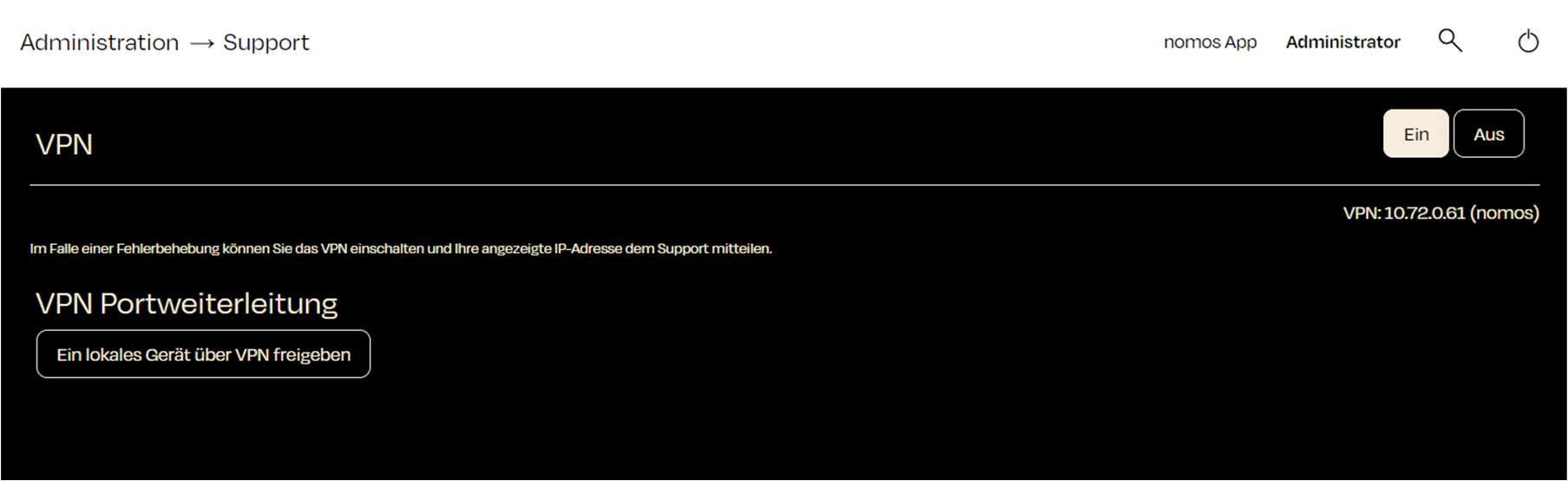 Important: The customer must explicitly share this VPN connection by activating it and informing support of the displayed IP address. Only then can support access the system to carry out any necessary troubleshooting or configurations.