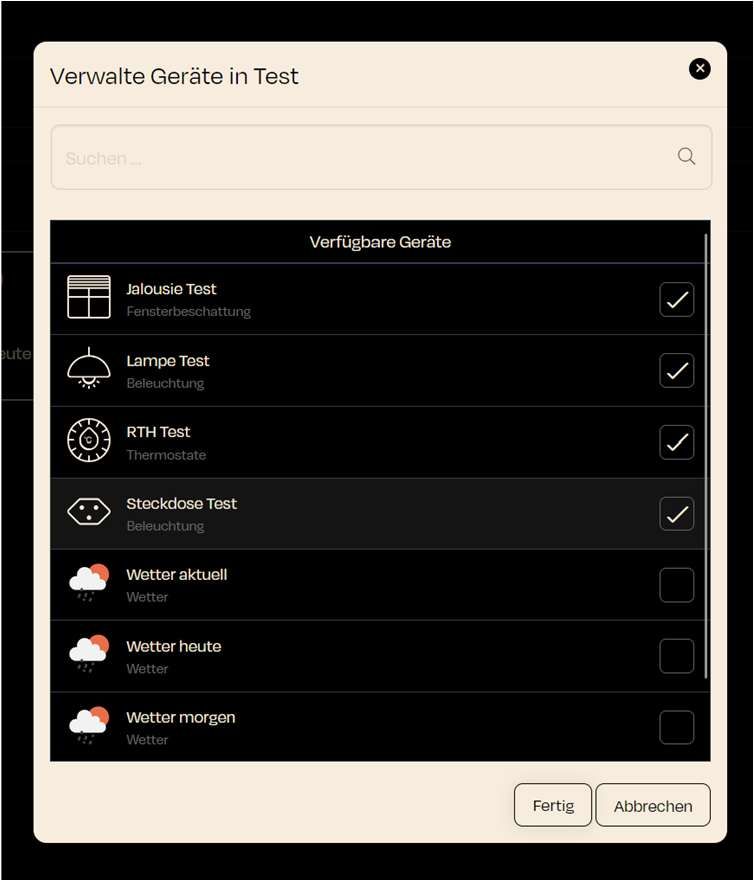 Each device has a checkbox on the right. By checking the box, you can assign the device to the current room.