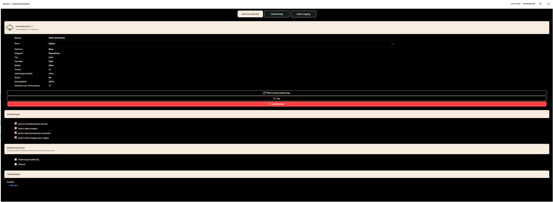 This shows the zone and room where the device is located. In this case, the device is placed in the area WHG 1 (ground floor right) in the balcony room.