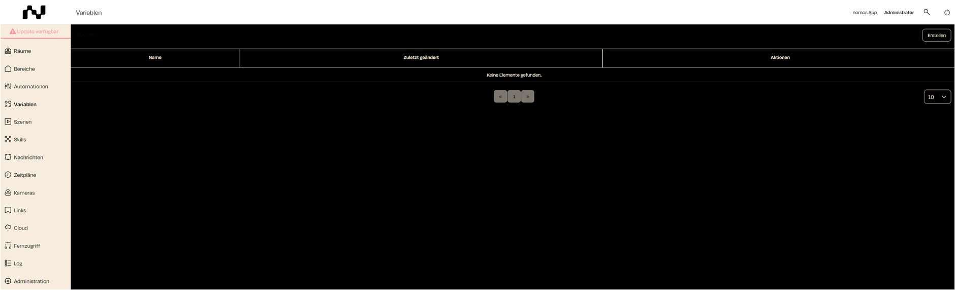 In this view, you can create, manage, and use variables for automation purposes. A variable is a custom unit that can be used in automations to store states or values.